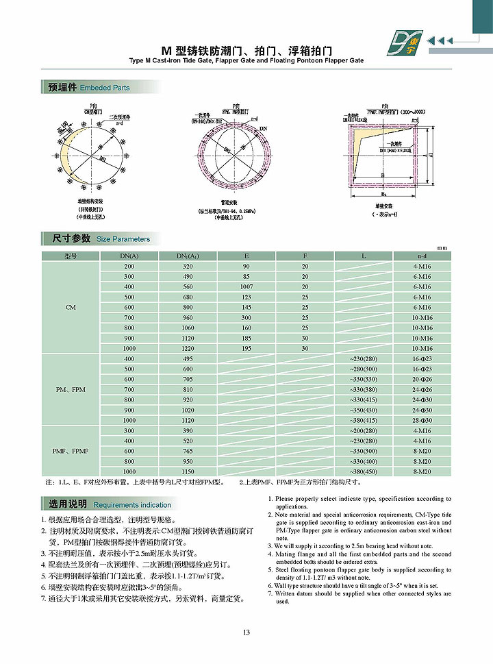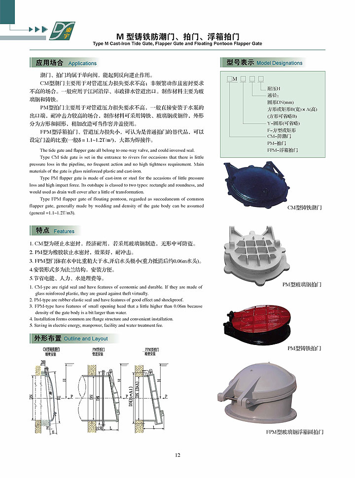 - M型鑄鐵防潮門、拍門、浮箱拍門