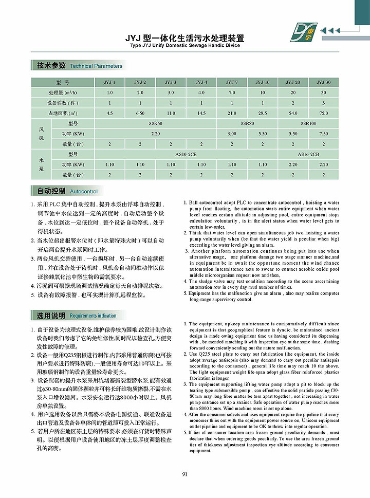 - JYJ型一體化生活污水處理裝置